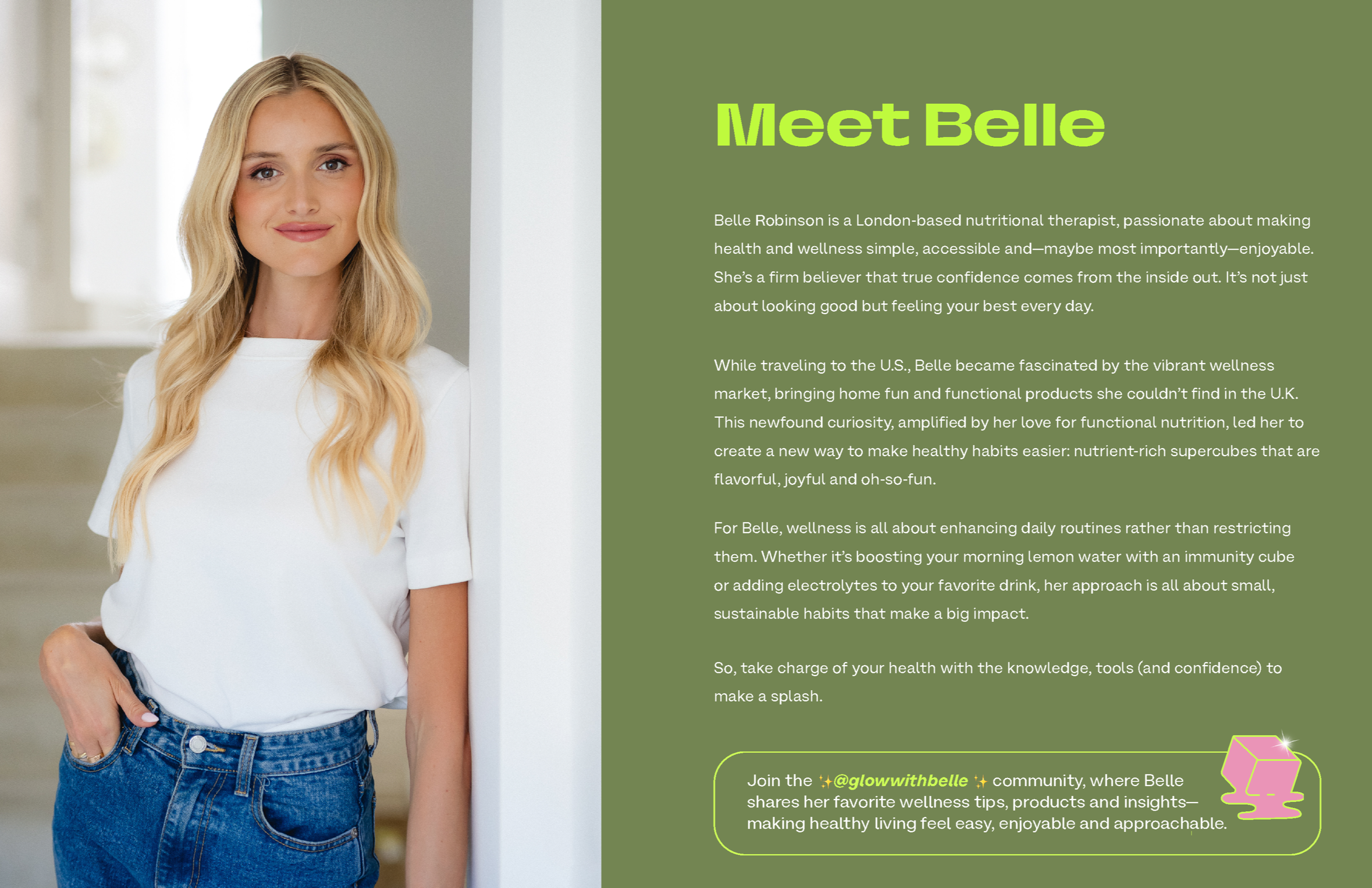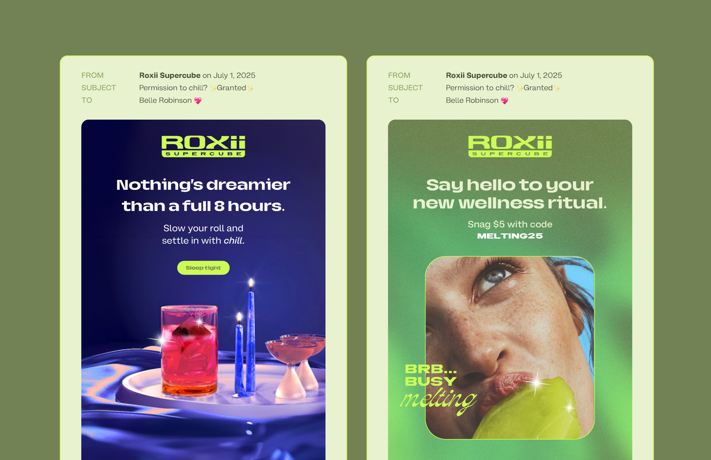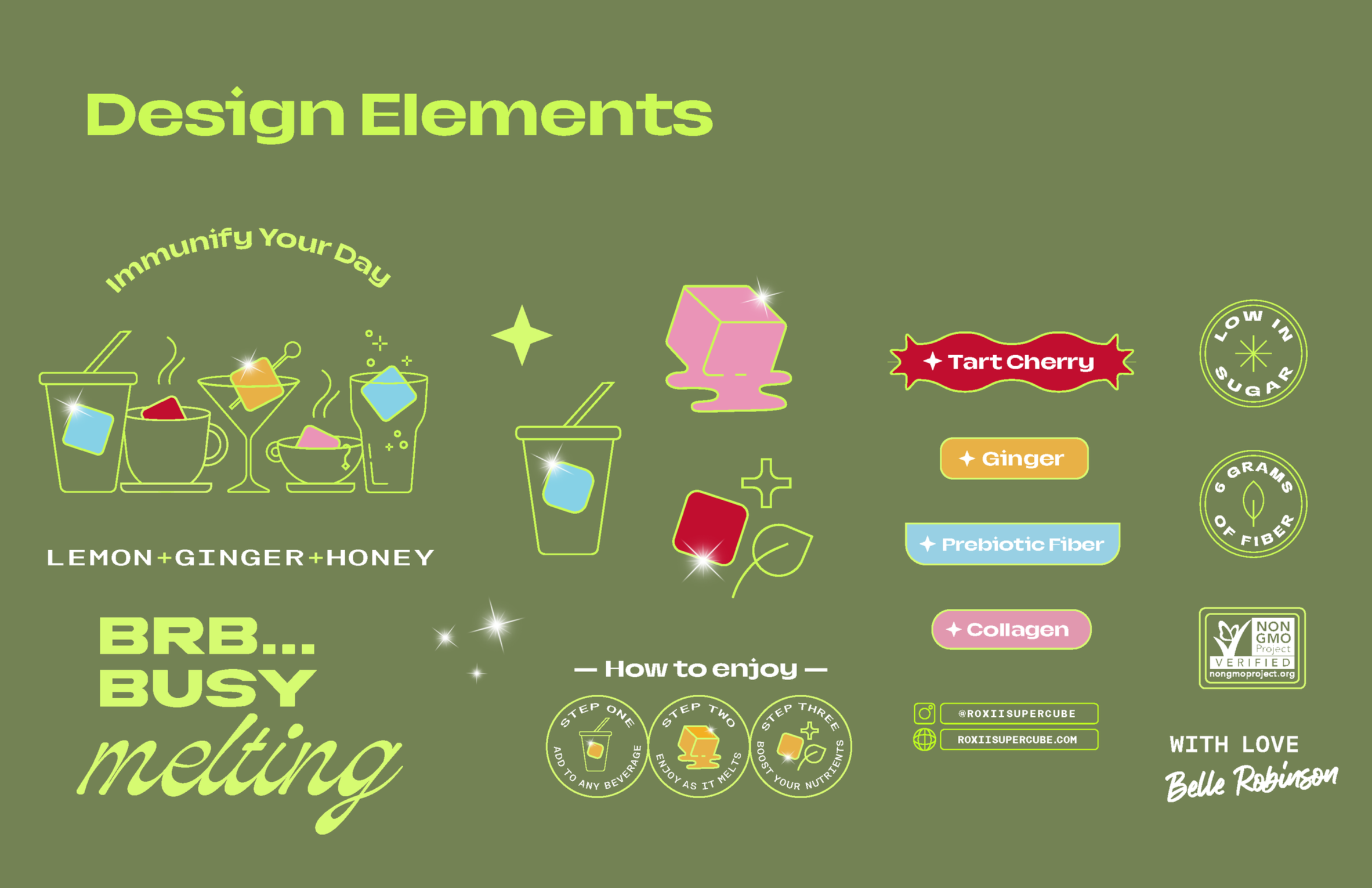 Wellness alert! Nutritional therapist Belle Robinson had a big, brilliant idea—and a refreshingly simple solution to wellness. Flavorful, nutrient-packed, hyper-frozen cubes that just so happen to look oh-so stunning dropped into any soda, water, or cocktail (making clumpy, dull powders look like, well… clumpy, dull powders). We helped name and build the Roxii Supercube brand and identity, partnering with Belle to launch an entirely new approach to wellness. It was a treat to be part of a team creating a brand-new product from the very (very!) start.